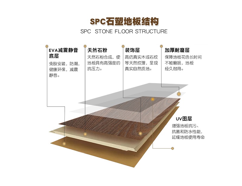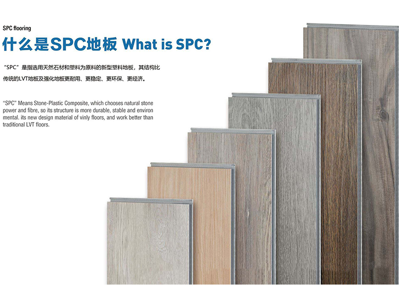 SPC stone plastic flooring have feature on zero formaldehyde, mildew proof, moistureproof, fire resistance, mothproof and easy installation and so on. With excellent stability and durability, SPC flooring have solved the problem ofnature woodflooring deformation problems, but also solve the formaldehyde problem ofotherdecorative materials, it has many colors and patterns to choose, which suitable forindoor flooring decoration in hotel and hospital shopping malls and other publicplaces.And compared with WPC flooring, SPC stone flooring' production process issimple and cheap cost.