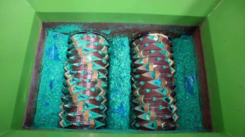 GLF series film shredders adopt double film shafts design that rotate a medium speed, low noise and high efficient without pusher. Adopt SIENMENS LOGO microcomputer control system with function of start, stop, automatic reverse sensors to protect the machine against over loading and jamming. It is especially suitable for recycling the medium hardness and soft material, for example film, woven bag, jumbo bag, paper and ect. Aiming at different material, it could use different shaft.