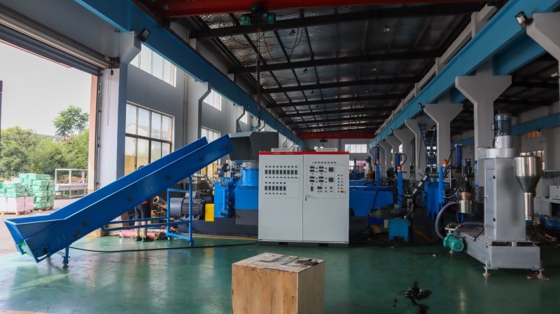 SJ series film recycling pelletizer production line is the special equipment for the film recycling and pelletizing . With compacting machine ,it could pre-compact the thin material into the small granule,making the automatic feeding material easier,and it efficiency improves the production.Cylinder type hydraulic changer with vacuum gas exhausting enables the non-stop changing filter and no leaking material.Pelletizing by die-face-cut improves the pelletizing quality.