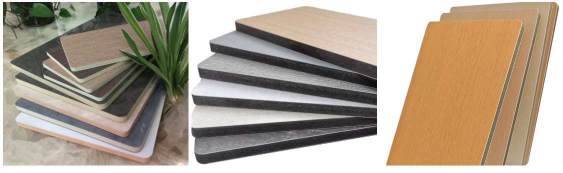 The most common surface treatment method for carbon crystal boards is veneer treatment, which uses a bonding layer to attach a layer of PP film/PET film/solid wood skin/technology wood on the surface of the board, making the board present different materials and textures, such as metal, leather, and even have the effect of a solid wood board