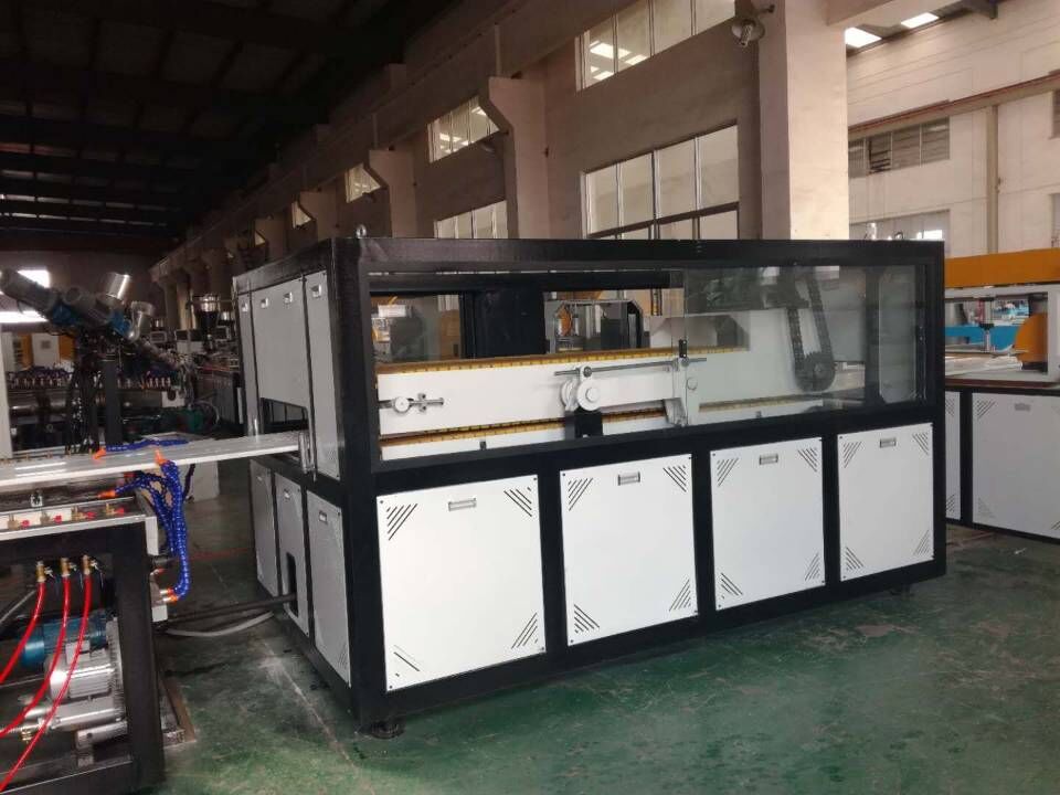 This production line is designed according to international latest technology, mixed PVC with plant fibre symmetrically. It adopts high-efficiency conical double-screw extruder with forcible cooling system to extrude and form. The wood plastic panel out from our line has features of green environment protection, damp proof, antisepticise and not distortion, thus suitable for processing method of wood and can be recycled to reuse. It has been widely used in wide door, partition panel, construction template, base plate of container, furnish panel, etc.