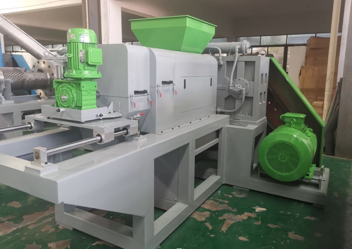 This Wet film scrap squeezer dryer plastic granulator machine is used after the plastic film/plastic agricultural film/PP woven bags/Space bag/tons bags/thin waste plastics plastic sheets washed,using the squeeze dewatering principle,squeeze the water from the plastic by rotating screw.The water will flow out from the bottom,the plastic will get hot by high intensity extrusion friction,and will plasticizing mildly after the mould heating.Finally the blade will cut the granules from the mould.