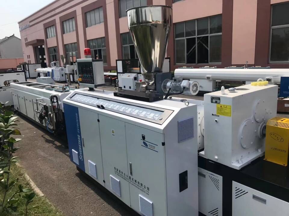 The series extruders with appropriate die-mould and auxiliay machine can directly convert thermoplastic especial PvC powder into pipe, plate, sheet, film and profiles, and also provide function of modifying and pelleting. The extruders are derived by A.C motor with a thruster to steepless regulate. It is also equipped with the over-load protection and stoppage alarming system. The screw's core and the outside of barrel is cooled by circulation of oil, it includes vacuum venting and forced feeding.